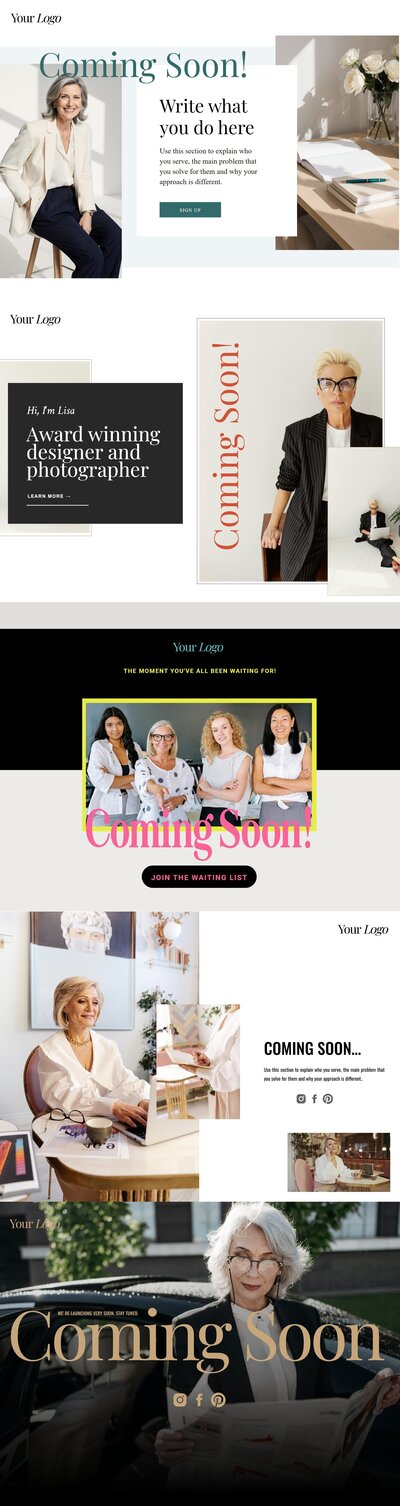 You will receive five 'Coming Soon' webpage templates that blend beautifully with our full templates. Plus, new Showit users will get a code for one free month of hosting. Experience the simplicity of Showit's easy drag and drop interface and get your website online today.