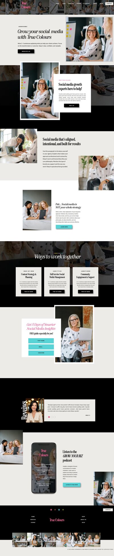 Create freely with simple drag-and-drop tools that make customising your site effortless. Every template is built with strategy and designed for serious 'wow' factor. Plus, you’ll get instructions so you can launch your website in a single week.
